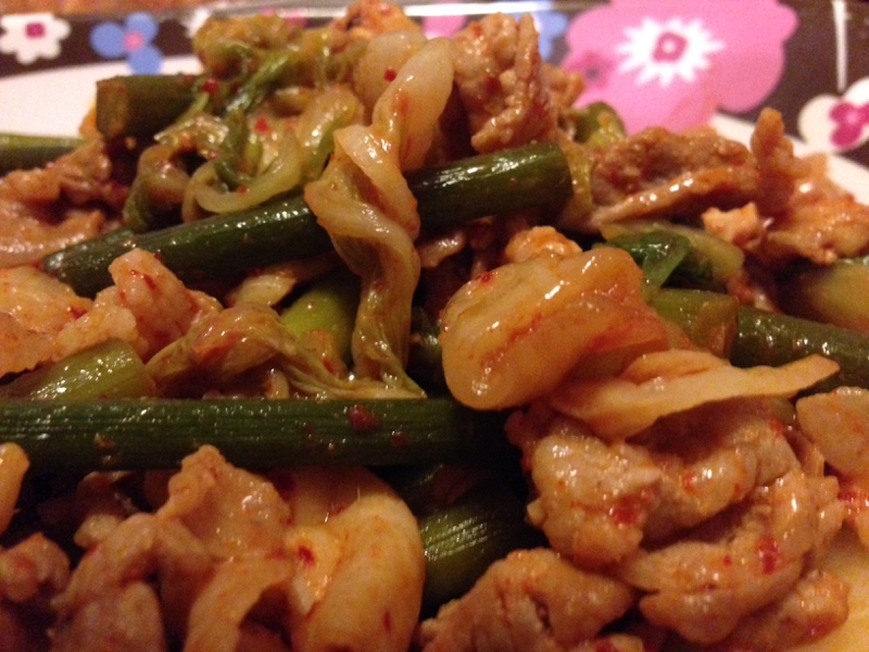 10 07 02 豚肉とにんにくの芽のキムチ炒め キムチレシピ